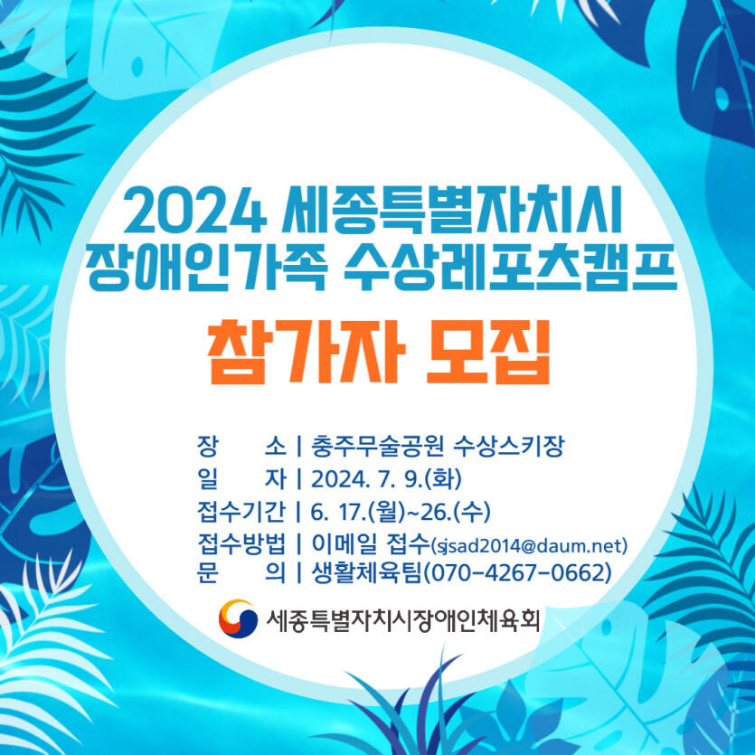 2024 세종특별자치시 장애인가족 수상레포츠캠프 개최 안내