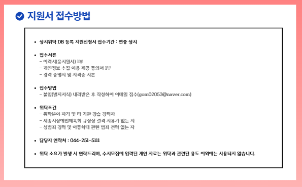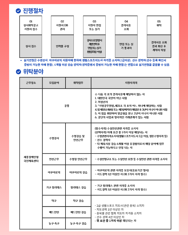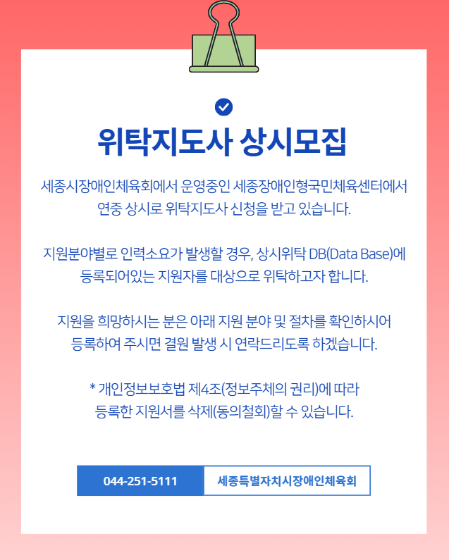 세종특별자치시장애인체육회 위탁지도사 상시 모집