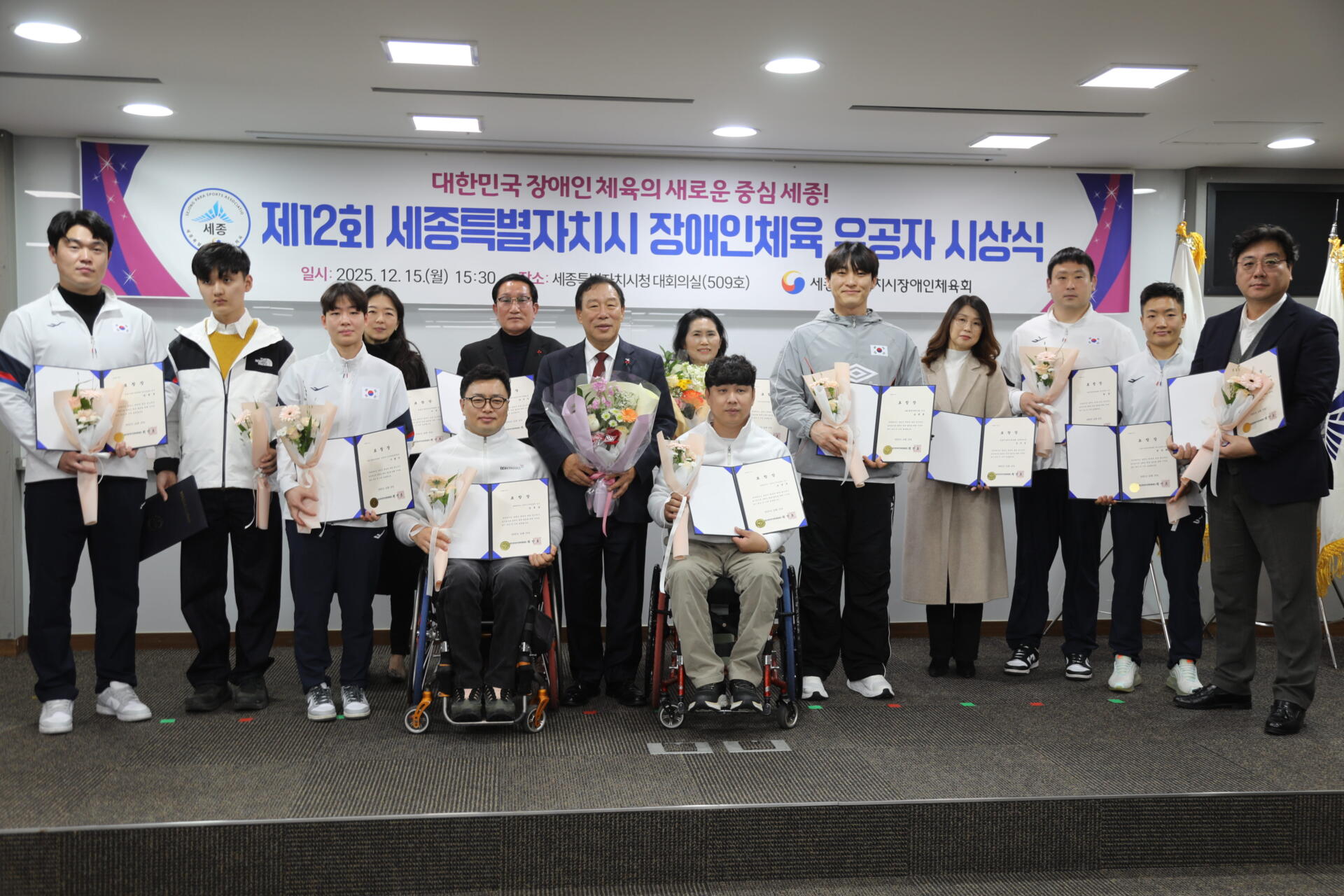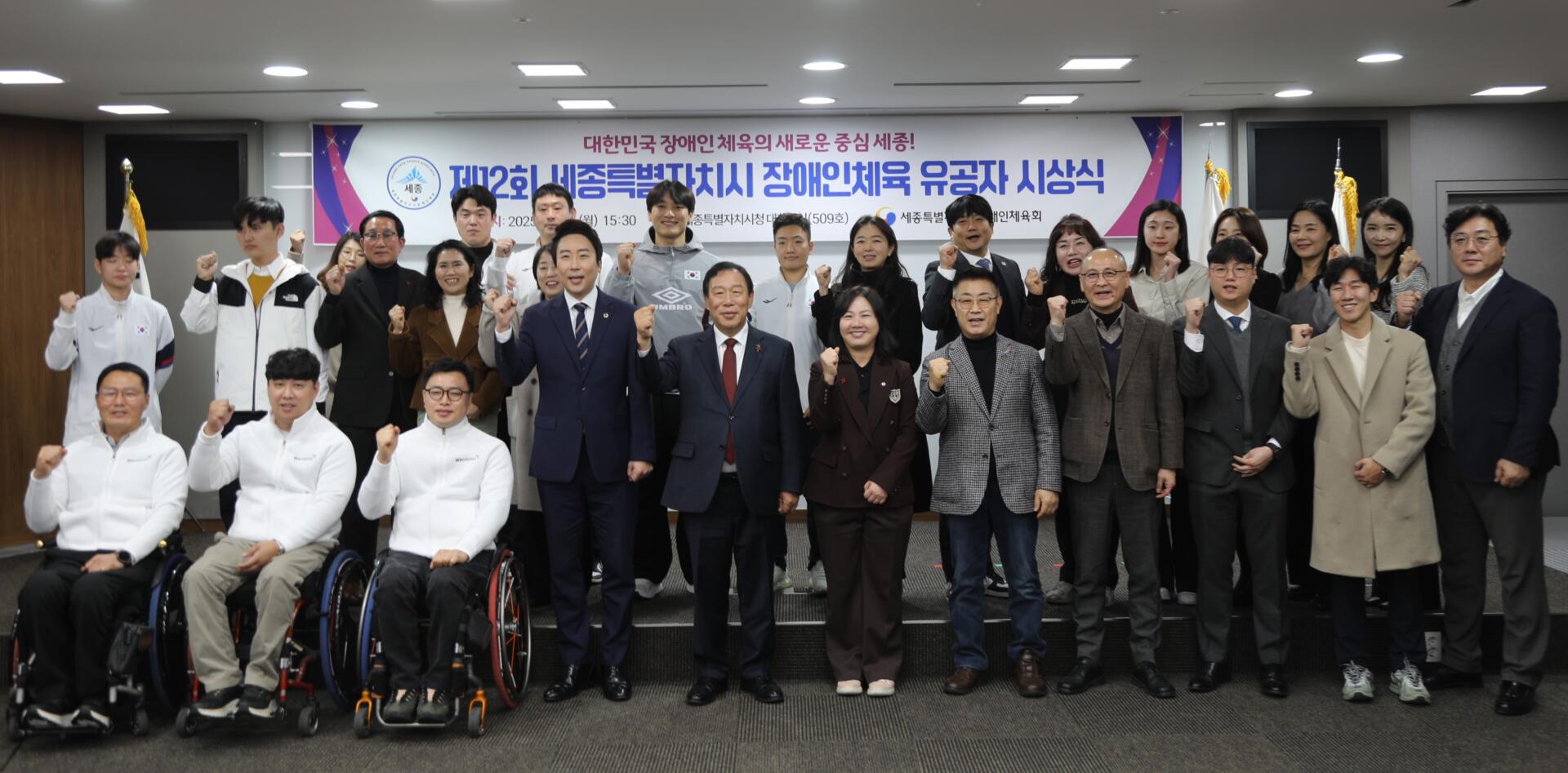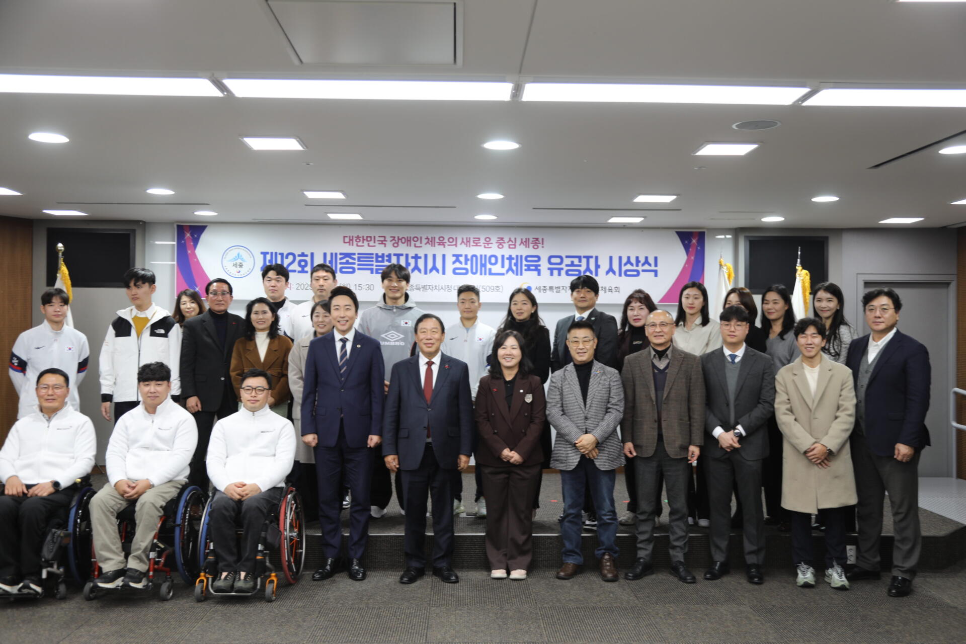 12월 15일(월) 15시 30분 ‘세종특별자치시청 대회의실’에서는 2025년 세종시 장애인체육 발전에 기여한 유공자 표창을 통한 노고를 격려하는 ‘제12회 세종특별자치시 장애인체육 유공자 시상식’이 진행되었습니다!